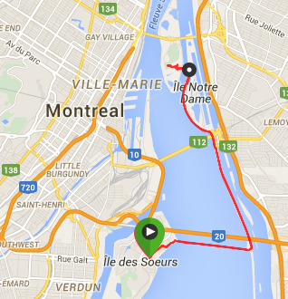 A ligação entre a L'Île des Soeurs e a L'Ile de Notre Dame é pela Estacade da ponte Champlain, uma ponte reta de uns 3 km, ventos absurdos e quase impossível de atravessar na volta, vento contra e estávamos morrendo.